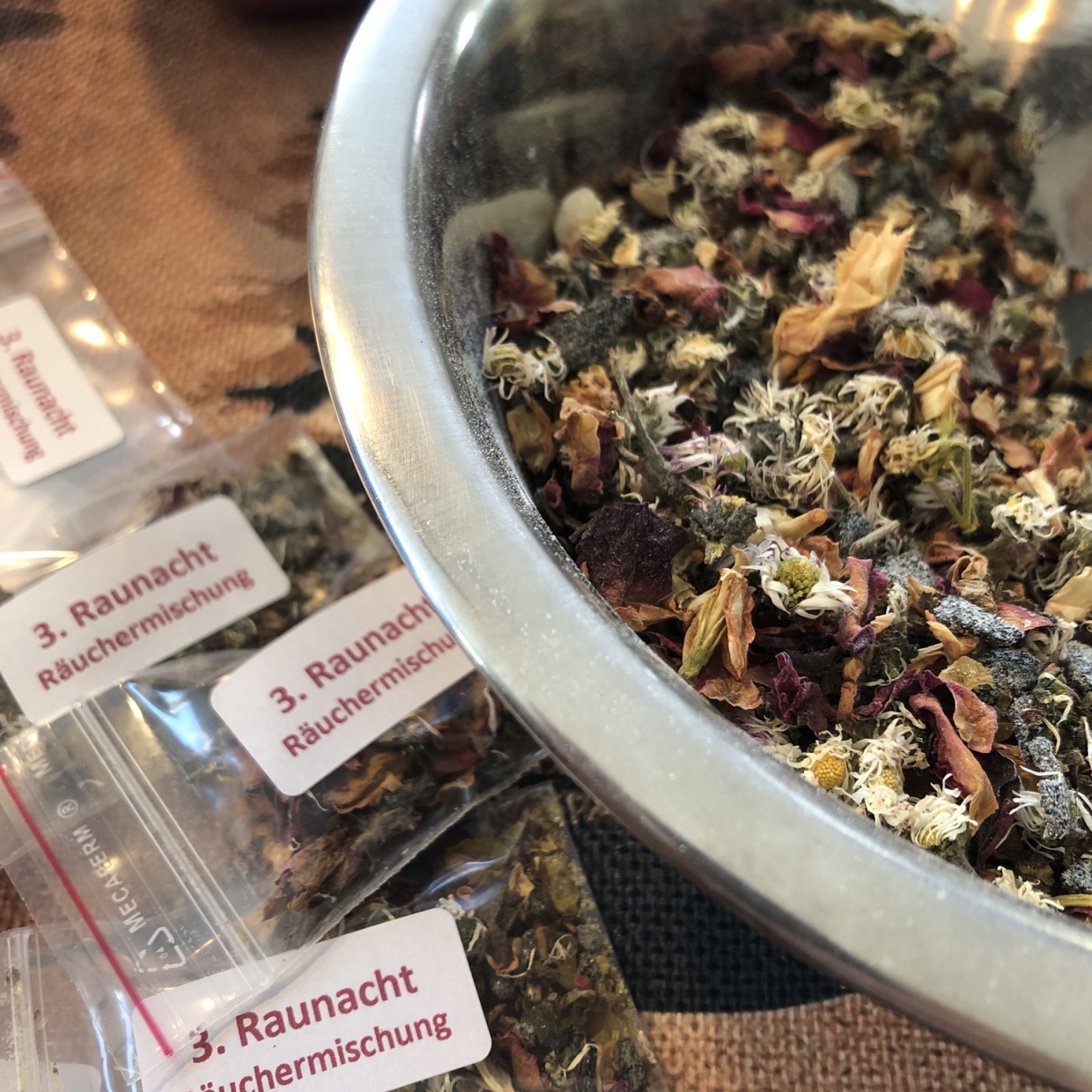 Das Set beinhaltet Begleitkarten zu jeder Raunacht mit inspirierenden Impulsen, Affirmationen und kleinen Ritualen, um die Raunächte bewusst für deine persönliche Entwicklung zu nutzen. Zudem habe ich zu jeder Raunacht eine abgestimmte Räuchermischung kreiert, die dich dabei unterstützt, die Themen der jeweiligen Nacht zu vertiefen und eine stimmungsvolle Athmosphäre zu schaffen.