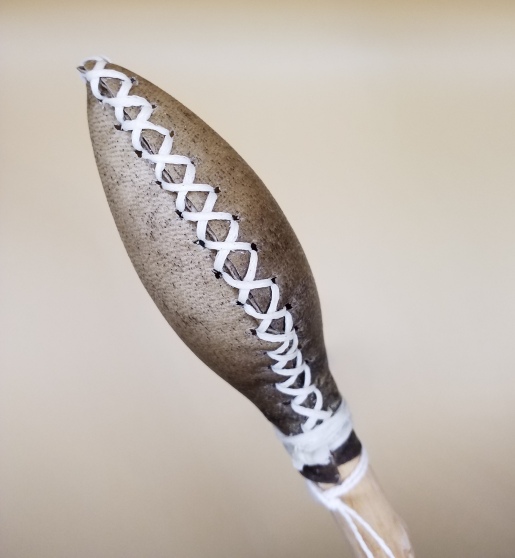 Rassel klein Spitze aus Rothirsch, weiss gebunden